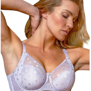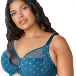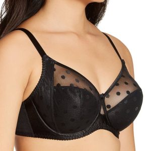 Superior construction adds amazing support for full busted women. Gentle elastic at the top of the cup and soft fabric makes it so comfortable that you will want to wear it all the time. Lustrous detailing on the lace creates a very feminine and sophisticated look. Pairs beautifully with U2493 Carmen high waisted polka dot brief.