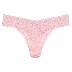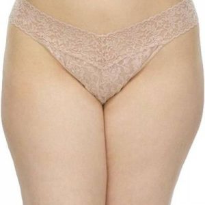 The Hanky Panky PLUS Original Rise stretch lace thong sits high on the hip and features the signature “V front and V back” design.
