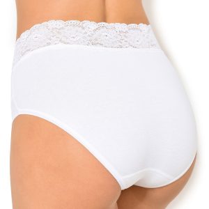 A magnificent, silky, cotton/ poly full brief topped with a floral stretch, scalloped lace band that sits in just the right spot without digging.