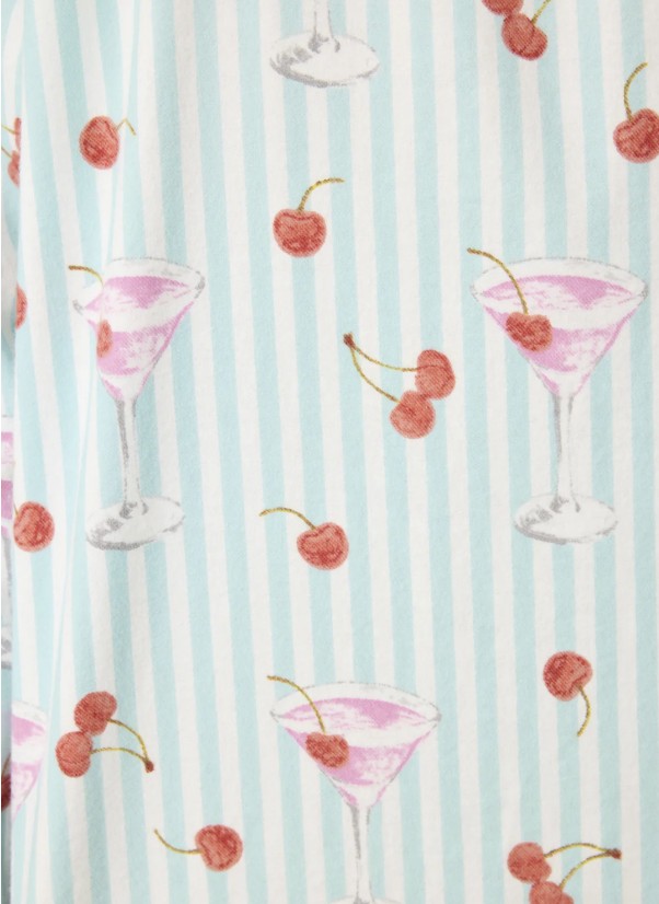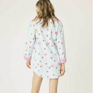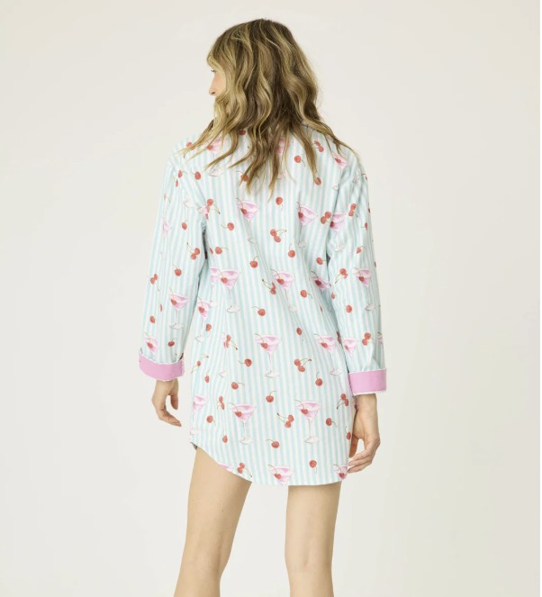 Cozy cotton flannel, meet happy hour. This long-sleeve nightshirt from P.J. Salvage is crafted in a classic twill weave and patterned with minty stripes, pink cocktails, and cheery little cherries.