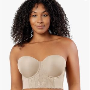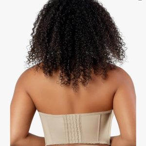 This stylish, strapless, longline bra has light foam, smooth cups. The multiple hook and eye longline back closure helps smooth and add support, perfect for full busted women.