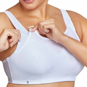 Exclusive design combines a seamless wire-free inner bra with the adjustable outer panel creating double bounce control, while the two-way stretch fabric moves with you, keeping you cool & dry up to an “I” cup.