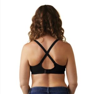 Bravado’s wire-free nursing bra clips easily when you are ready to nurse and has a seamless molded cup for modesty without the bulk and adjustable straps that can criss cross if needed.