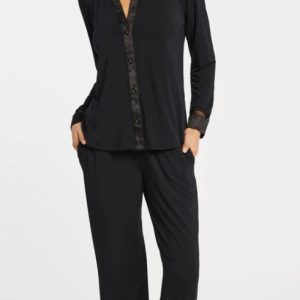 Features: – Soft stretch mesh details – Button-down top – Satin drawstring – High quality satin charmeuse – Top and pant included – TENCEL TM Modal x Eco Soft Technology fabric – Ethically made