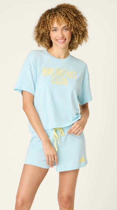 The drawstring shorts boast a sunny graphic detail while the Breakfast Club t-shirt is an easy boxy fit, both crafted in soft slub jersey. Whether it’s coffee refills or staying in all day and deciding the couch is the plan, keep it cozy with P.J. Salvage.