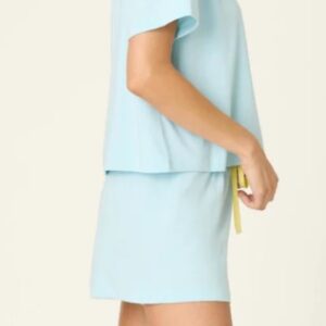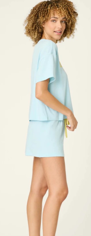Slow mornings start with P.J. Salvage’s light blue pajama lounge set that delivers easygoing comfort with an oversized, short-sleeve tee and matching drawstring short.