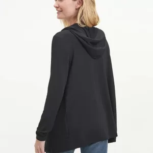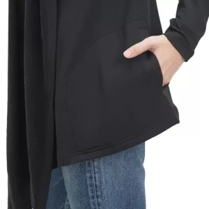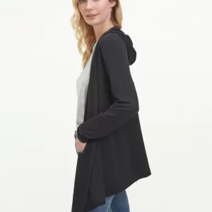 Made with our signature Supersoft fabric, this modern hooded cardigan with asymmetrical draping looks fabulous with jeans or leggings and makes a perfect cozy companion at home or while travelling.