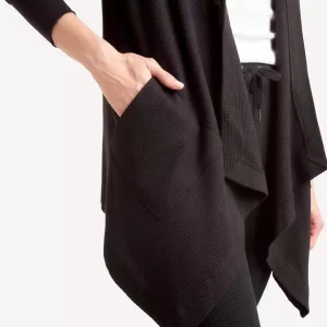 With its attached hood and front patch pockets, this modern take on a timeless, classic cardigan has an effortless, draped fit crafted from a soft, thermal fabric with hugs-you-in-the-right-places stretch.