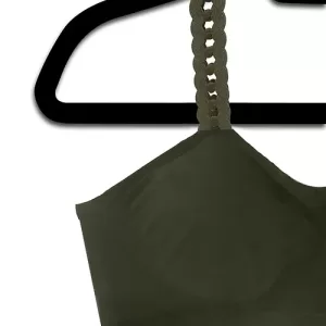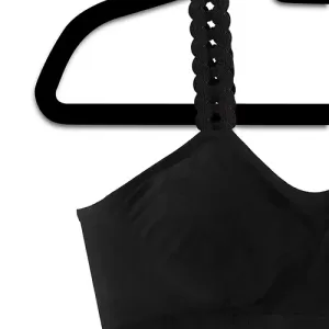 These seamless, one size fits most bralettes showcase permanent trendy straps that you can choose to show off under your favorite t-shirts, tank tops and sweaters or wear as your best kept little fashion secret. Yes, the pads are removable.