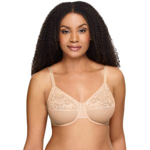 Now you can wear your favorite tops and dresses with confidence. This comfortable, full coverage, seamless minimizer showcases a beautiful lacey lingerie look with sheer, patterned mesh cups. Offering fully adjustable straps and a leotard back to prevent slippage and reduce back fat while providing better support.